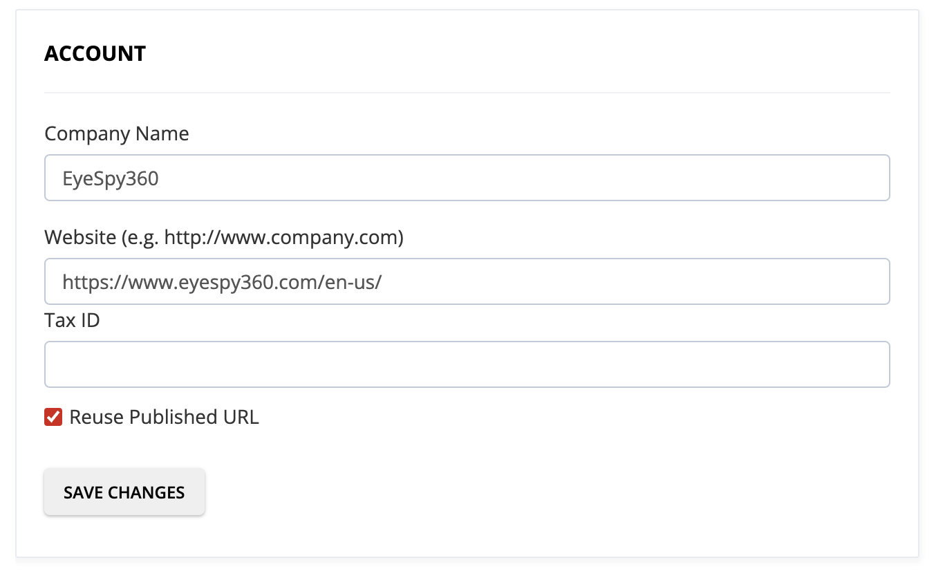3. Under the heading Account, you will see the Reuse Published URL checkbox. When selected, this will ensure your tour will use the existing URL when republished. When unselected, this will generate a brand new URL for your tour when republishing.