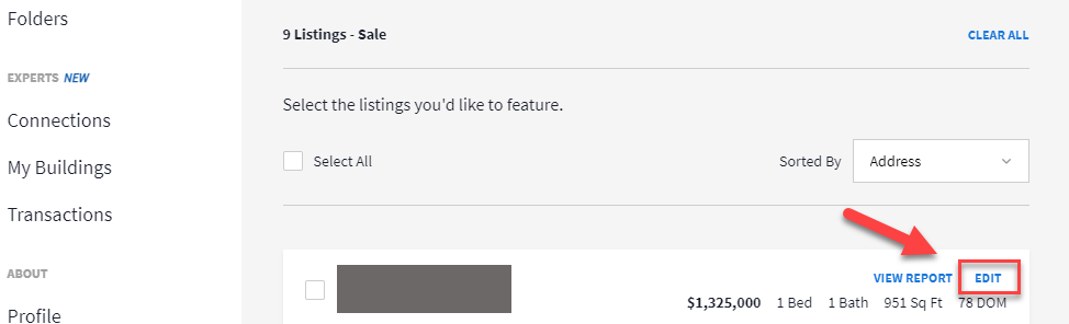 3. Click the Edit button on the listing you wish to add a virtual tour to.